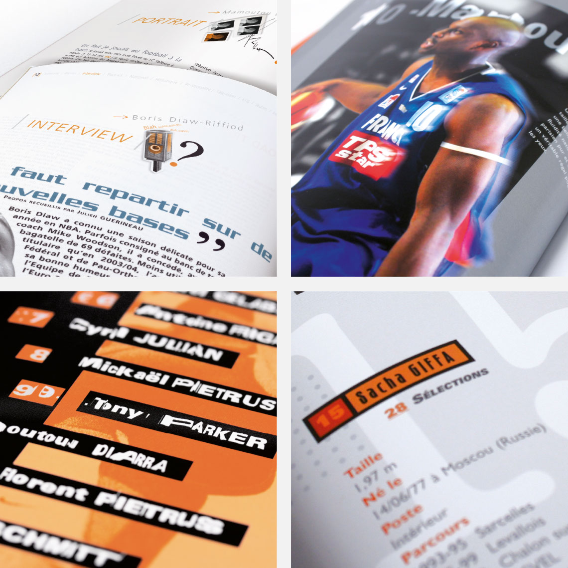 La FFBB souhaitait réactualiser son magazine traitant de l’actualité du basket-ball pour lui donner un souffle nouveau. Nous avons proposé une nouvelle formule pour ce magazine de 76 pages en le re-dynamisant avec une maquette plus attractive, enrichie de témoignages, de portraits de joueurs, d’anecdotes sur leur vie.